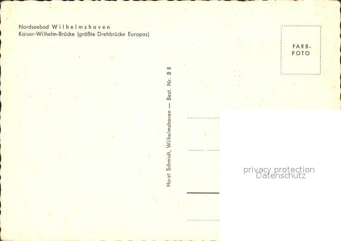 72092700 Wilhelmshaven CITY Kaiser Wilhelm Bruecke postalisch nicht gelaufen Erhaltung siehe scans KatCode: 11110003405000