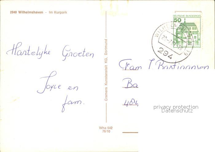 72603726 alte Postkarte Wilhelmshaven CITY Kurpark Teich Skulptur postalisch gelaufen Erhaltung siehe scans [FriedD77] KatCode: 11110003405000