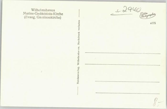 40261753 Wilhelmshaven CITY Marine Gedaechtnis Kirche postalisch nicht gelaufen Alte Ansichtskarte Postkarte Katcode 11110003405000