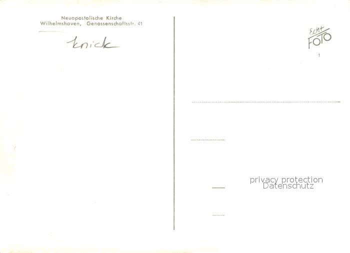 72821609 Wilhelmshaven CITY Neuapostalische Kirche postalisch nicht gelaufen Erhaltung siehe scans [AndreD76] KatCode: 11110003405000