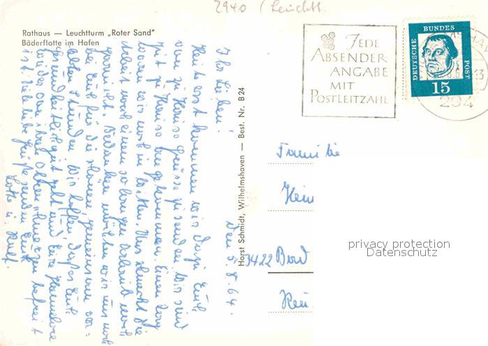72720597 alte Postkarte Wilhelmshaven CITY Rathaus Leuchtturm Roter Sand Baederflotte Hafen postalisch gelaufen Erhaltung siehe scans [KathaD79] KatCode: 11110003405000