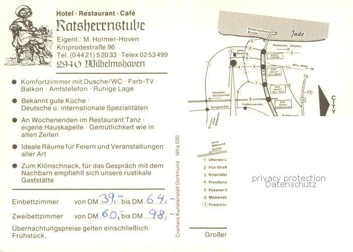 73759362 Wilhelmshaven CITY Ratsherrnstube Hotel Restaurant Gastraeume postalisch nicht gelaufen Werbekarte (keine Postkarte) Erhaltung siehe scans [FriedD77] Werbekarte (keine Postkarte) Frie Katcode 11110003405000