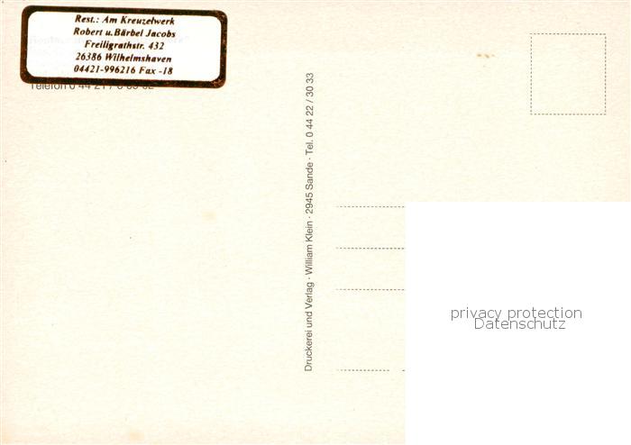 73758496 Wilhelmshaven CITY Restaurant Am Kreuzelwerk postalisch nicht gelaufen Erhaltung siehe scans [LiesaD40] Lies Katcode 11110003405000