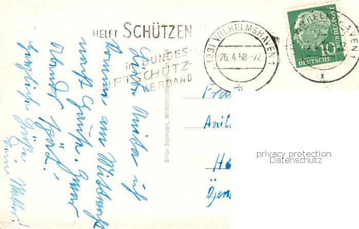 73828872 Wilhelmshaven CITY Seehund Kaiser Wilhelm Bruecke SuedstrandBaederschiff Ruestringen Strandpromenade Seeschwalben postalisch gelaufen Erhaltung siehe scans [FriedD77] alte Postkarte Frie Katcode 11110003405000