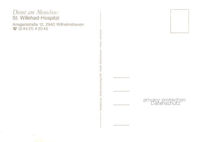 73837040 Wilhelmshaven CITY St. Willebad Hospital Marinekorps postalisch nicht gelaufen Erhaltung siehe scans [FriedD77] Frie Katcode 11110003405000