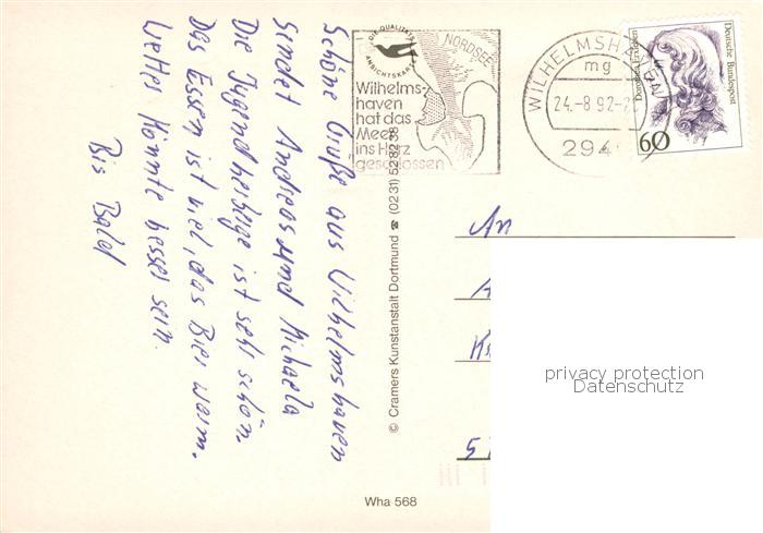 73836110 Wilhelmshaven CITY Stadtpanorama Luftbild Strand oelfangschiff Mellum Seewasseraquarium Kaiser Wilhelm Bruecke postalisch gelaufen Erhaltung siehe scans [FriedD77] alte Postkarte Frie Katcode 11110003405000