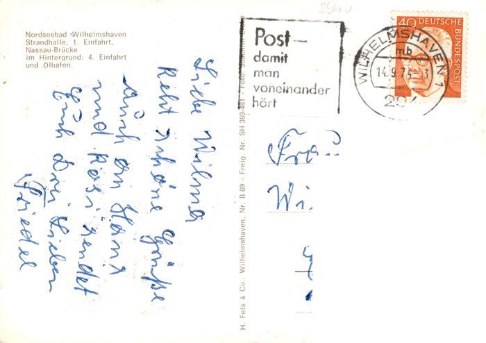 73930086 Wilhelmshaven CITY Strandhalle Einfahrt Nassau Bruecke oelhafen Fliegeraufnahme postalisch gelaufen Erhaltung siehe scans [WerneD78] alte Postkarte Wern Katcode 11110003405000