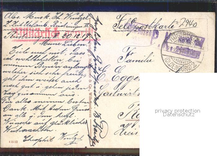 42169198 alte Postkarte Wilhelmshaven CITY Torpedobootshafen postalisch gelaufen Feldpost Erhaltung siehe scans KatCode: 11110003405000