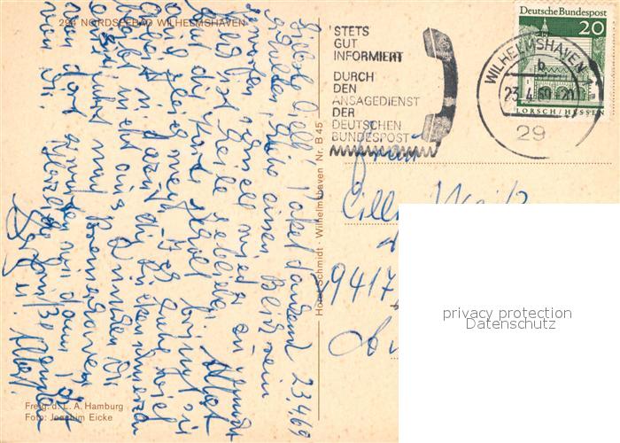 73011068 alte Postkarte Wilhelmshaven Fliegeraufnahme postalisch gelaufen Erhaltung siehe scans [WerneD78] KatCode: 11110003405000