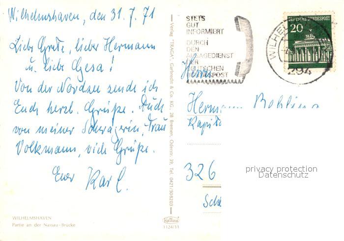 73094955 alte Postkarte Wilhelmshaven Nassau Bruecke postalisch gelaufen Erhaltung siehe scans [KathaD81] KatCode: 11110003405000