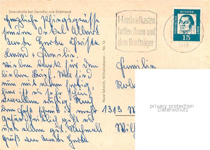 72976581 alte Postkarte Wilhelmshaven Strandhalle bei Sturmflut Suedstrand Badesteg postalisch gelaufen Erhaltung siehe scans [FriedD77] KatCode: 11110003405000