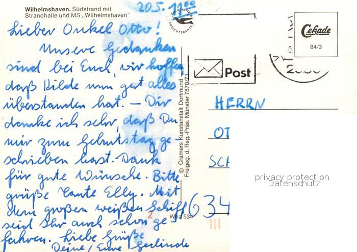 73210503 alte Postkarte Wilhelmshaven Strandhalle MS Wilhelmshaven Fliegeraufnahme postalisch gelaufen Erhaltung siehe scans [FriedD77] KatCode: 11110003405000