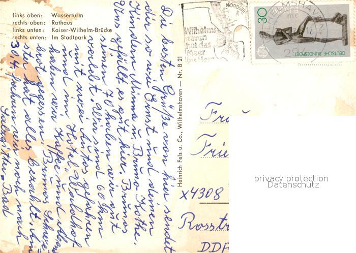 73126768 alte Postkarte Wilhelmshaven Wasserturm Rathaus Kaiser Wilhelm Bruecke Stadtpark postalisch gelaufen Erhaltung siehe scans [KathaD81] KatCode: 11110003405000