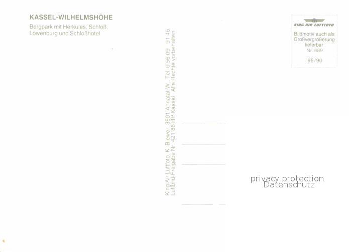 72880208 Wilhelmshoehe Kassel Bergpark mit Herkules Schloss Loewenburg Schlosshotel Fliegeraufnahme postalisch nicht gelaufen Erhaltung siehe scans [FriedD77] KatCode: 11110006611000
