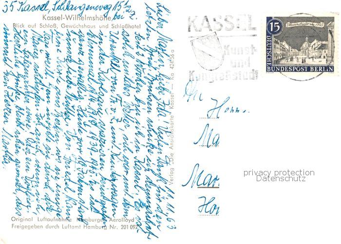 73828719 alte Postkarte Wilhelmshoehe Kassel Blick auf Schloss Gewaechshaus und Schlosshotel postalisch gelaufen Erhaltung siehe scans [WerneD78] KatCode: 11110006611000