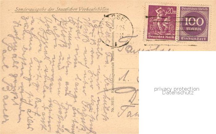 43342794 alte Postkarte Wilhelmshoehe Kassel Blick von der Schlossterrasse zum Herkules postalisch gelaufen Erhaltung siehe scans [WerneD78] KatCode: 11110006611000