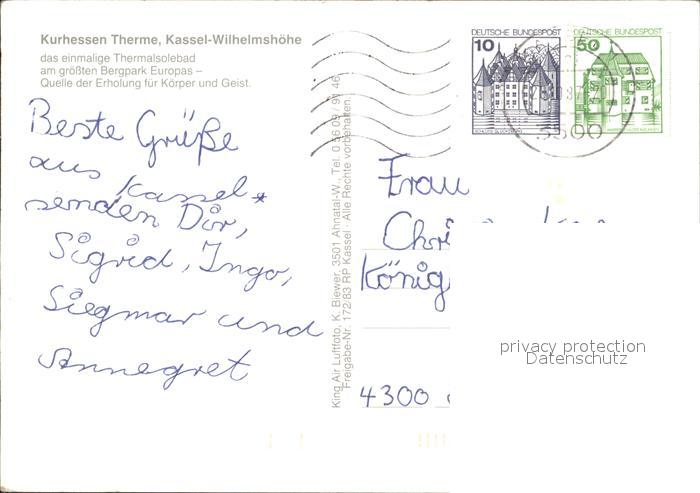 72138689 alte Postkarte Wilhelmshoehe Kassel ehem Thermalsolebad Fliegeraufnahme postalisch gelaufen Erhaltung siehe scans KatCode: 11110006611000