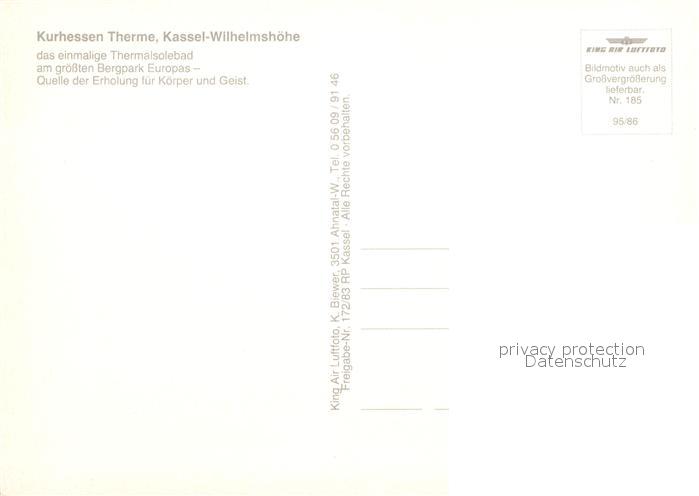 72947085 Wilhelmshoehe Kassel Fliegeraufnahme Kurhessen Therme postalisch nicht gelaufen Erhaltung siehe scans [LiesaD40] KatCode: 11110006611000
