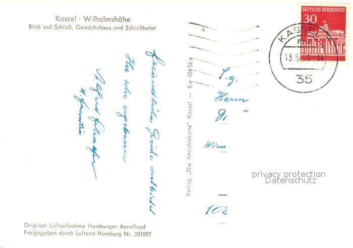 73098636 alte Postkarte Wilhelmshoehe Kassel Fliegeraufnahme Schloss postalisch gelaufen Erhaltung siehe scans [KathaD81] KatCode: 11110006611000