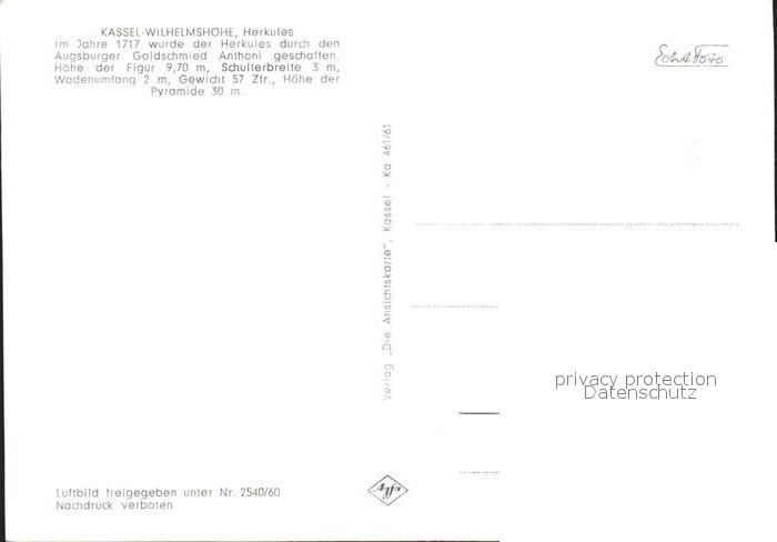 71998612 Wilhelmshoehe Kassel Herkules Fliegeraufnahme postalisch nicht gelaufen Erhaltung siehe scans KatCode: 11110006611000