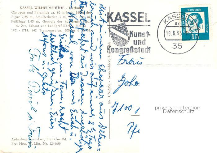 73608923 alte Postkarte Wilhelmshoehe Kassel Herkules Oktogon und Pyramide postalisch gelaufen Erhaltung siehe scans [WerneD78] KatCode: 11110006611000