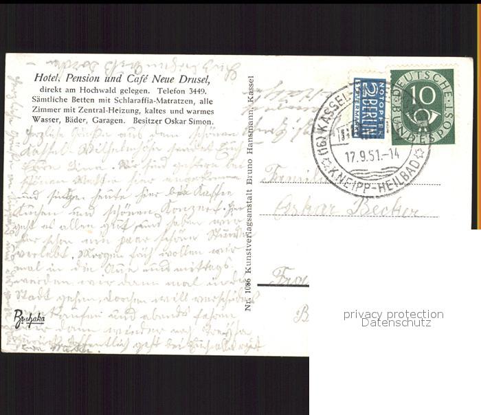 72249328 alte Postkarte Wilhelmshoehe Kassel Hotel Pension Cafe Neue Drusel postalisch gelaufen Erhaltung siehe scans KatCode: 11110006611000