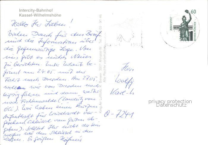 72370212 alte Postkarte Wilhelmshoehe Kassel Intercity-Bahnhof postalisch gelaufen Erhaltung siehe scans KatCode: 11110006611000