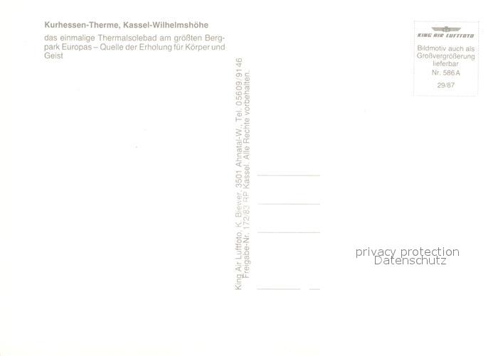 72972512 Wilhelmshoehe Kassel Kurhessen-Therme postalisch nicht gelaufen Erhaltung siehe scans [PaolaD17] KatCode: 11110006611000