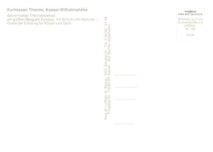 73904429 Wilhelmshoehe Kassel Kurhessen Therme Bergpark Schloss und Herkules Quelle Fliegeraufnahme postalisch nicht gelaufen Erhaltung siehe scans [WerneD78] KatCode: 11110006611000