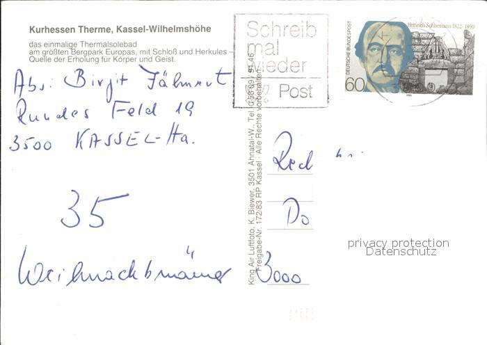 72465180 alte Postkarte Wilhelmshoehe Kassel Kurhessen Therme Fliegeraufnahme postalisch gelaufen Erhaltung siehe scans KatCode: 11110006611000