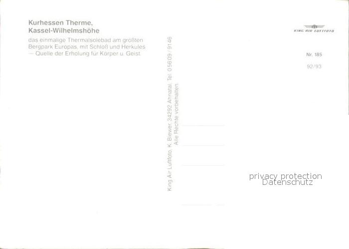 72213801 Wilhelmshoehe Kassel Kurhessen Therme mit Schloss und Herkules Fliegeraufnahme postalisch nicht gelaufen Erhaltung siehe scans KatCode: 11110006611000