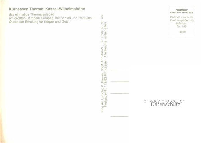 72753971 Wilhelmshoehe Kassel Kurhessen Therme Thermalsolebad Bergpark Kaskaden Herkules Fliegeraufnahme postalisch nicht gelaufen Erhaltung siehe scans [FriedD77] KatCode: 11110006611000