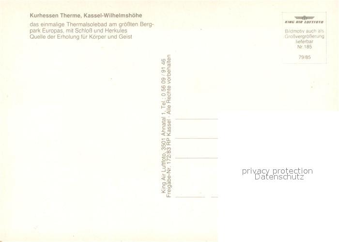 73225053 Wilhelmshoehe Kassel Kurhessen Therme Thermalsolebad Bergpark Schloss Herkules Fliegeraufnahme postalisch nicht gelaufen Erhaltung siehe scans [FriedD77] KatCode: 11110006611000