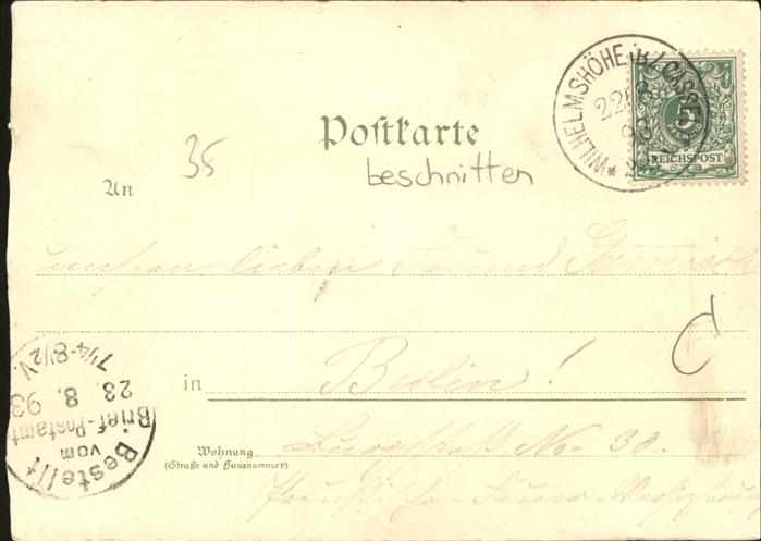 41333856 alte Postkarte Wilhelmshoehe Kassel Loewenburg Schloss Fontaine postalisch gelaufen Erhaltung mit Maengel KatCode: 11110006611000