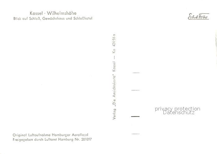 73167331 Wilhelmshoehe Kassel Schloss Gewaechshaus Schlosshotel Fliegeraufnahme postalisch nicht gelaufen Erhaltung siehe scans [FriedD77] KatCode: 11110006611000