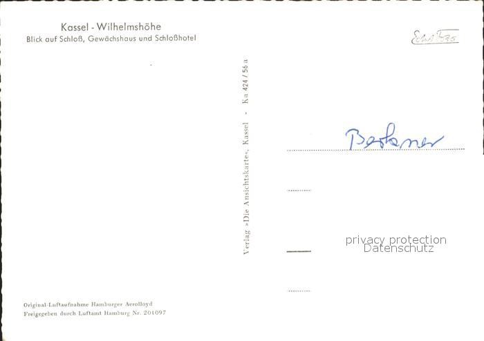 72327780 Wilhelmshoehe Kassel Schloss Gewaechshaus Schlosshotel Fliegeraufnahme postalisch nicht gelaufen Erhaltung siehe scans KatCode: 11110006611000