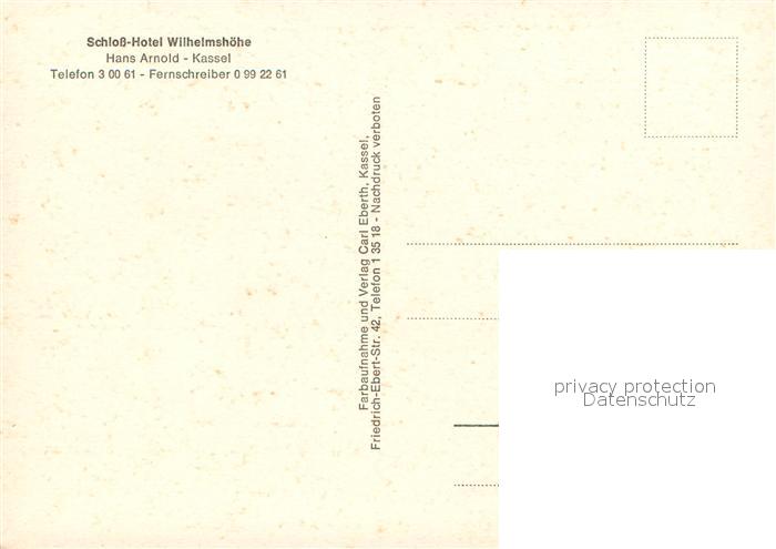 73655301 Wilhelmshoehe Kassel Schloss Hotel postalisch nicht gelaufen Erhaltung siehe scans [FriedD77] KatCode: 11110006611000