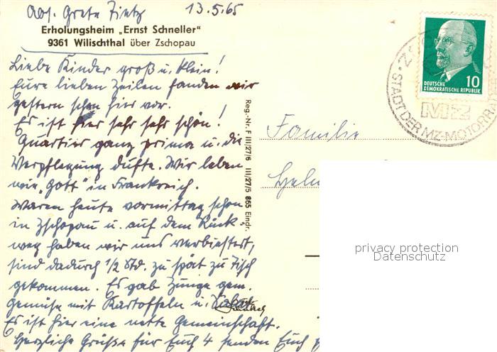 43347353 alte Postkarte Wilischthal Erholungsheim Ernst Schneller postalisch gelaufen Erhaltung siehe scans [KathaD81] KatCode: 11110014181420