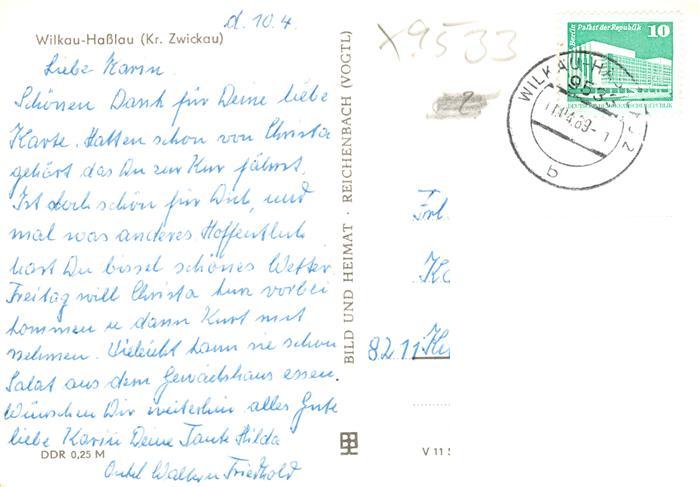 73907541 alte Postkarte Wilkau-Hasslau Panorama AWG Siedlung Ernst Thaelmann Rathaus postalisch gelaufen Erhaltung siehe scans [FriedD77] KatCode: 11110014193520