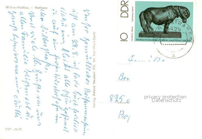 72984843 alte Postkarte Wilkau-Hasslau Rathaus postalisch gelaufen Erhaltung siehe scans [FriedD77] KatCode: 11110014193520