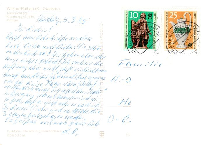73908041 alte Postkarte Wilkau-Hasslau Teilansicht Kirchberger Strasse Rathaus postalisch gelaufen Erhaltung siehe scans [WerneD78] KatCode: 11110014193520