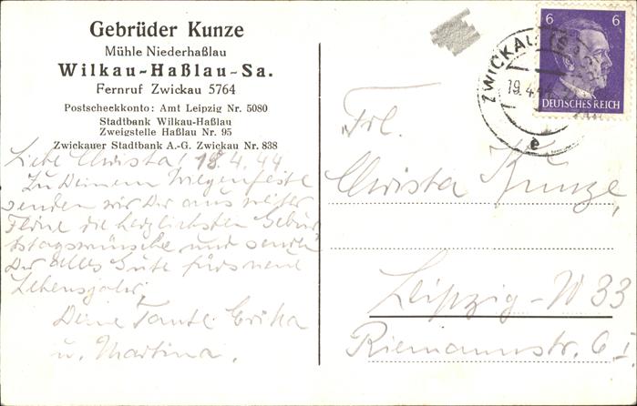 Wilkau-Hasslau Walzenmühle Gebrüder Kunze
