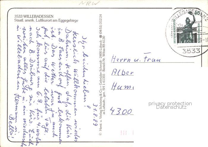 72483659 alte Postkarte Willebadessen Fliegeraufnahme postalisch gelaufen Erhaltung siehe scans KatCode: 11110005762040