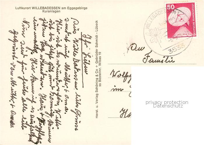 73816533 alte Postkarte Willebadessen Kuranlagen postalisch gelaufen Erhaltung siehe scans [WerneD78] KatCode: 11110005762040