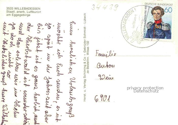 74043480 alte Postkarte Willebadessen Panorama Luftkurort Skulpturenpark Parkanlagen Internationale Bildungsstaette postalisch gelaufen Erhaltung siehe scans [FriedD77] KatCode: 11110005762040