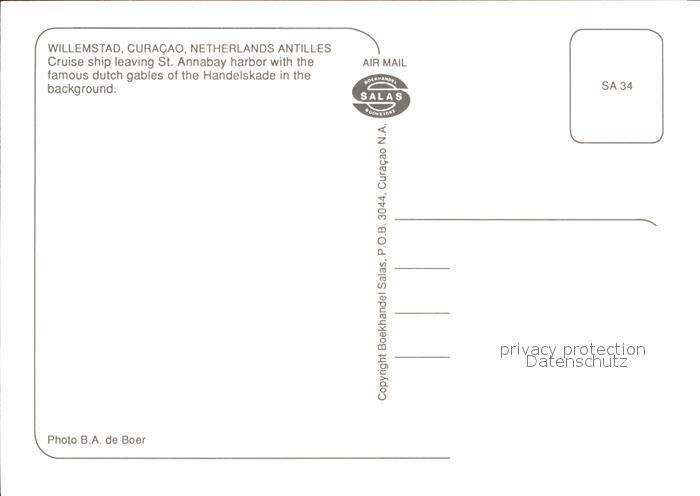 72565977 Willemstad Cruise ship leaving St Annabay harbour KatCode 16190