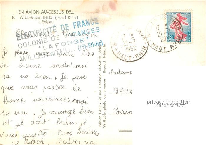 13618882 Willer-sur-Thur Eglise Vue aerienne postalisch gelaufen Erhaltung siehe scans [WerneD78] carte postale Wern Katcode 11170068668372