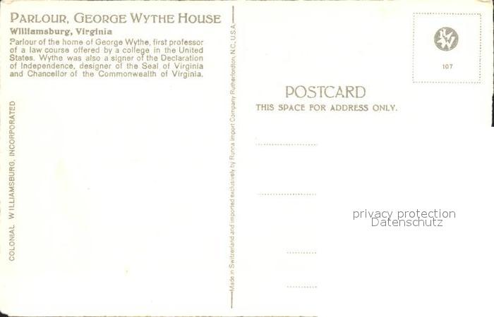 71990980 Williamsburg Virginia Parlour George Wythe House postalisch nicht gelaufen Erhaltung siehe scans KatCode: 14140490000000