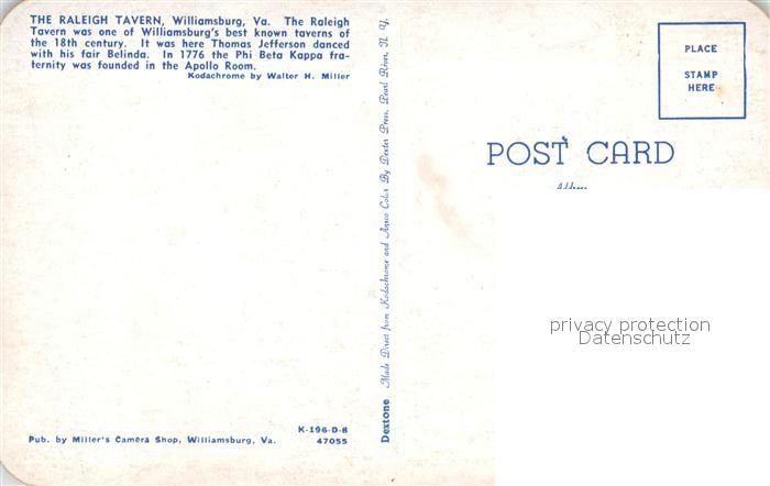 73059000 Williamsburg Virginia The Raleigh Tavern postalisch nicht gelaufen Erhaltung siehe scans [WerneD78] KatCode: 14140490000000