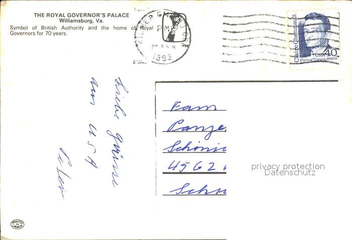 72586674 old postcard Williamsburg Virginia The Royal Gouvernor’s Palace postalisch gelaufen Erhaltung siehe scans [AndreD76] KatCode: 14140490000000